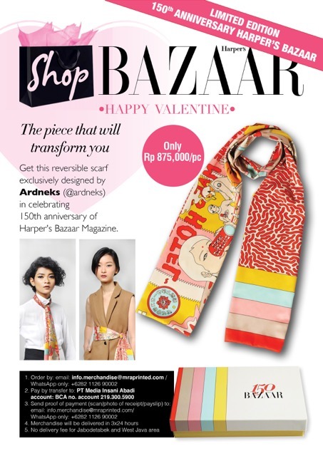 Get this reversible scarf exclusively designed by Ardneks (@ardneks) in celebriting 150 Anniversary of Harper's Bazaar Magazine only RP. 875,000 / pc.