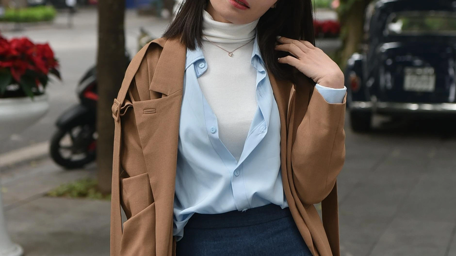 Cosmo Tips: Gunakan atasan biru sebagai focal point, lalu padukan dengan warna netral seperti grey atau broken white agar look tetap seimbang.