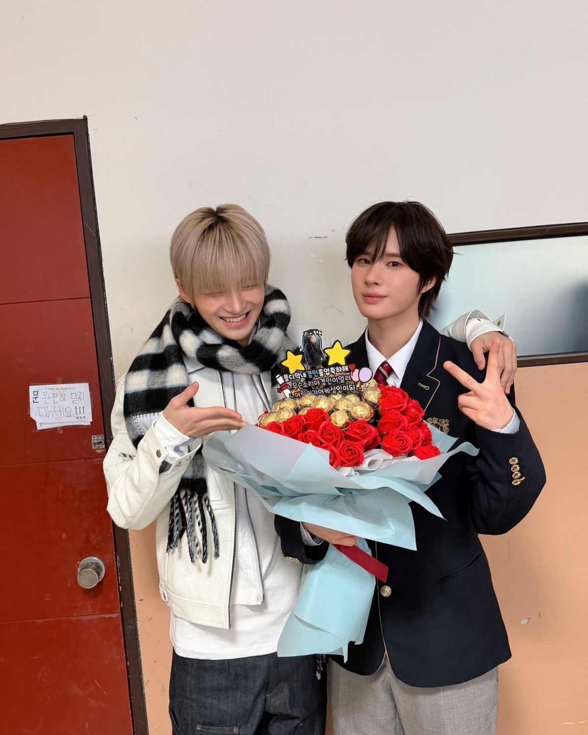 1. Resmi lulus dari Hanlim Multi Art School, tentu saja pria kelahiran 2 Oktober 2007 tersebut mengabadikan momen manis ini bersama dengan temannya. Waktu cepat berlalu ya, 42 (SAI)!