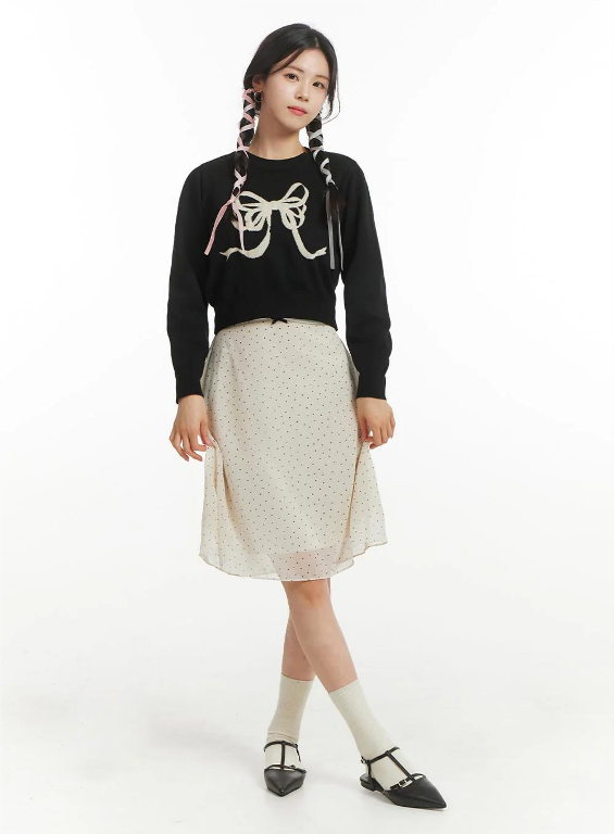 2. Cropped Top: Jika kamu tidak suka memasukkan baju, gunakan atasan model crop. Potongan baju yang berakhir tepat di atas pinggang rok akan memberikan kesan tubuh yang proporsional dan menggemaskan.