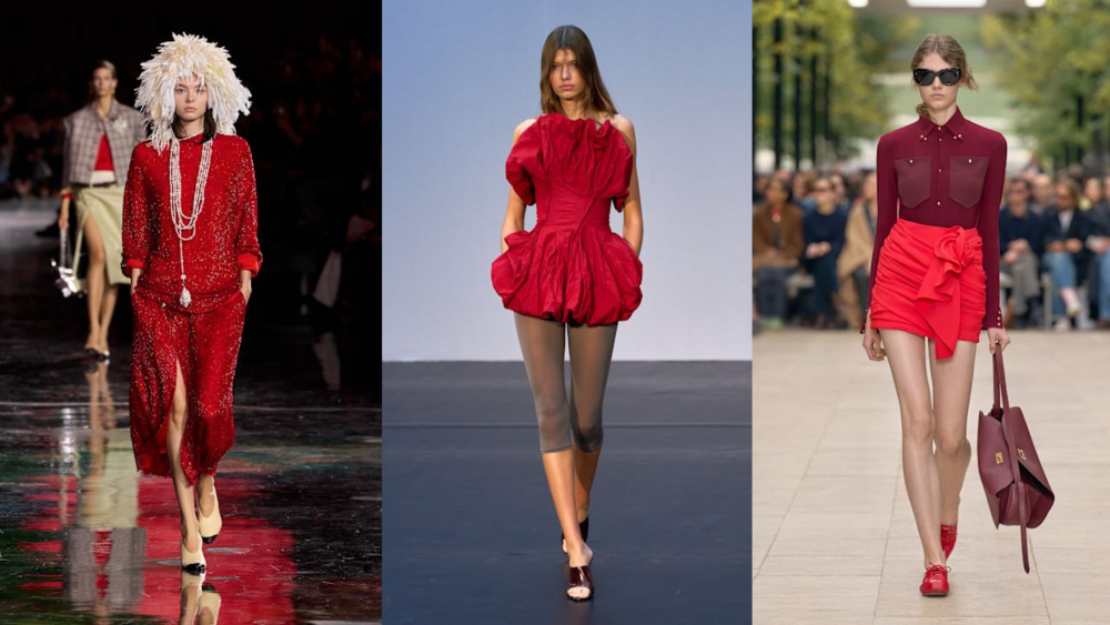 Bright red tetap menjadi warna pernyataan yang cocok jika kamu senang menjadi pusat perhatian. Merah cerah sering kali digunakan sebagai highlight untuk mengelevasi tampilan. CHANEL menghadirkan warna ini ke dalam material tweed ikonik yang memberikan tekstur pada warna solid, sementara CELINE mengadopsi merah dalam material kulit untuk menciptakan kesan edgy yang maskulin. Magda Butrym memanfaatkan merah untuk mempertegas detail desain organik seperti drapery yang rumit. Cara paling aman untuk memakai warna ini adalah dengan memadukannya dengan denim biru klasik untuk tampilan santai, atau dengan soft pink untuk menciptakan gradasi warna analog yang artistik dan sedang tren.