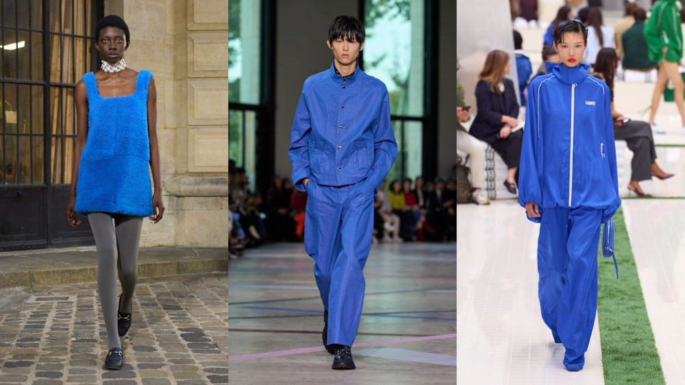 Deep blue muncul sebagai warna alternatif ketika industri kreatif mulai jenuh dengan warna navy yang konvensional. Warna ini bisa berfungsi sebagai pengganti hitam yang sempurna untuk memberikan dimensi tanpa terlihat terlalu berat di bawah sinar matahari musim panas. Meryll Rogge mengeksplorasi warna ini dalam potongan dekonstruktif, sementara Shiatzy Chen mengaplikasikannya pada siluet yang dinamis melalui potongan formal dan clean cut. Lacoste memanfaatkan rona bold deep blue untuk memperkuat kesan sporty yang elegan. Untuk tetap menjaga keseimbangan visual, gunakan teknik monokromatik dengan memadukan berbagai tekstur seperti satin dan katun dalam satu nada biru, atau tambahkan aksesori perak dan abu-abu metalik untuk menciptakan kesan futuristik yang bersih.