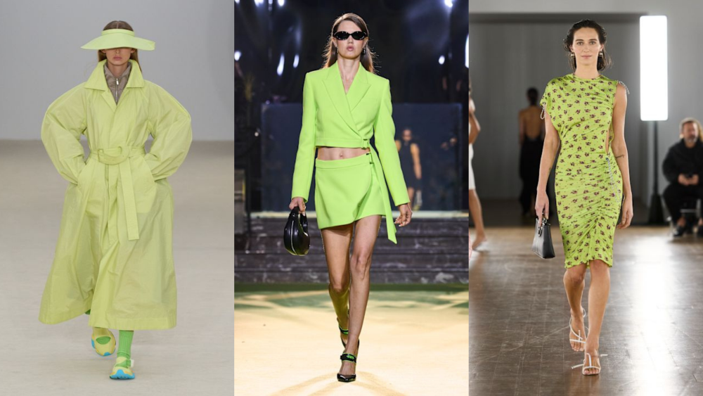 Light green menjadi warna yang tak diduga hadir dan menjadi tren musim ini. Warna ini memberikan efek visual musim panas yang kuat dan ringan serta cocok untuk material berbahan flowy seperti linen atau sutra. Coperni memanfaatkan warna ini dalam siluet modern dengan pengaplikasian motif bunga yang cantik, sedangkan Casablanca membawanya ke dalam desain yang lebih formal dengan sentuhan nuansa sporty. Issey Miyake memberikan tampilan baru dengan menerapkan light green pada siluet clean yang konstruktif. Warna ini sangat serasi bila dipadukan dengan lavender untuk mempertahankan nuansa pastel yang harmonis. Bagi mereka yang menginginkan gaya yang lebih membumi, memadukan hijau muda dengan warna tan atau cokelat kayu akan menciptakan palet hutan yang harmonis.