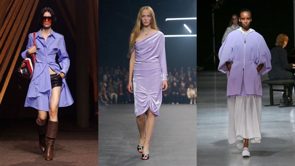Warna lilac hadir dengan nuansa pastel yang tenang dan feminin. CFCL menggunakan warna ini dalam konstruksi rajutan modern yang memeluk tubuh, sedangkan Valentino membawa Lilac ke dalam volume pakaian formal yang dramatis. Alexander McQueen memberikan interpretasi yang lebih tajam melalui potongan bahu yang struktural dan tegas. Untuk menghindari kesan yang terlalu kekanak-kanakan, padukan lilac dengan abu-abu gelap atau charcoal guna memberikan dimensi dewasa. Selain itu, perpaduan dengan hijau zamrud pada detail kecil dapat menciptakan kontras cantik untuk kesan artistik.