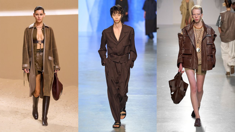 Warna mocha brown sempat menjadi Color of The Year 2025 dari Pantone. Tampaknya warna ini masih menolak untuk redup. Sebagai alternatif warna netral yang lebih hangat, mocha brown mendominasi dengan kesan mewah yang subtil. Ujoh menampilkan warna ini dalam struktur tailoring asimetris, sementara Niccolò Pasqualetti mengeksplorasi Mocha Brown melalui permainan transparansi kain yang berlapis. Hermes mengemas warna ini ke dalam material kulit dalam siluet kontemporer yang trendi. Mocha brown cukup fleksibel untuk dipadu padankan dengan warna lain. Warna ini dapat dipadukan dengan butter yellow untuk memberikan sentuhan cerah yang cantik. Penggunaan aksesori emas bisa menambah kesan mewah saat mengenakan palet cokelat ini pada acara malam hari.