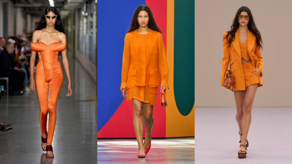 Energi vibrant musim panas yang ceria dan cerah terlihat dari kehadiran warna tak terduga di musim ini, yakni orange. Warna ini memerlukan perhatian lebih dalam pemilihan siluet agar tidak terlalu mendominasi tampilan pemakainya. Zimmermann mengemas warna ini ke dalam tampilan feminin melalui gaun-gaun flowy bermotif, yang dapat dipadukan dengan sandal tali berwarna netral. Jean Paul Gaultier menampilkan warna oranye yang lebih tajam pada potongan yang lebih eksploratif dan konstruktif, sementara Akris memilih pendekatan minimalis pada setelan jas yang bersih. Secara teknis, oranye sangat efektif jika disandingkan dengan putih bersih untuk gaya resort, atau dipadukan dengan deep teal pada tas atau sepatu sebagai kontras yang cantik bagi mereka yang ingin bereksperimen dengan color-blocking.