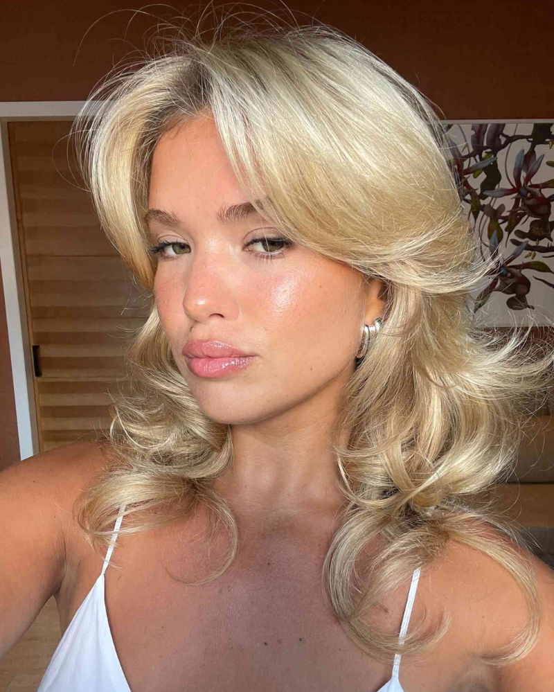Melengkapi struktur berlapis adalah poni tirai khasnya, yang menyatu sempurna dengan bagian-bagian yang lebih pendek yang membingkai wajah. Kombinasi ini memungkinkan fleksibilitas yang luar biasa, rambut dapat ditata dengan sikat bulat untuk tampilan "blowout" yang rapi dan terinspirasi tahun 90-an atau ditata acak dengan semprotan garam laut untuk estetika grunge "baru bangun tidur".