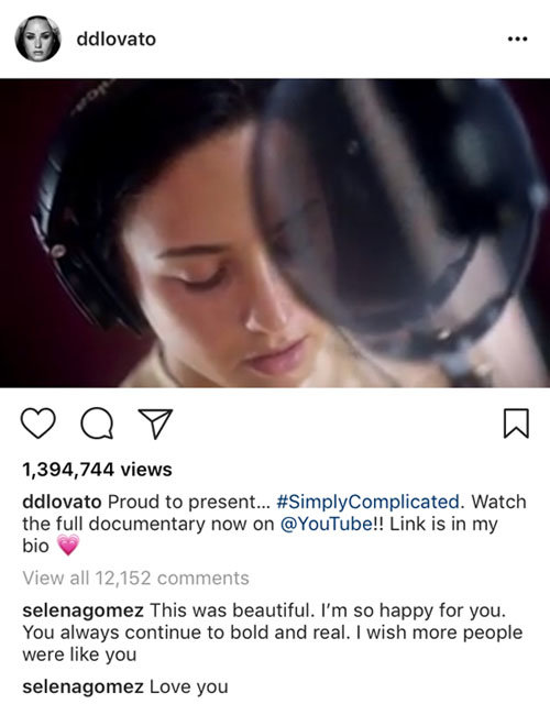 But there's good news! Setelah merilis film dokumenter Demi Lovato: Simply Complicated pada tanggal 17 Oktober kemarin, Selena langsung memberikan komentar manis pada teman masa kecilnya tersebut dalam komen Instagram.
