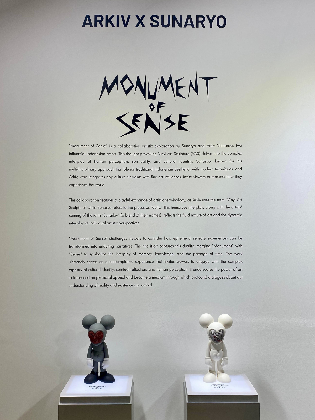 Salah satu karya unik dan menarik perhatian adalah kolaborasi antara seniman Sunaryo dan Arkiv Vilmansa yang berjudul Monument of Sense. Karya ini berbentuk patung seni Vinyl Art Sculpture (VAS) yang menggabungkan pengaruh tradisional dan kontemporer, menghadirkan dialog tentang persepsi manusia dan identitas budaya.
