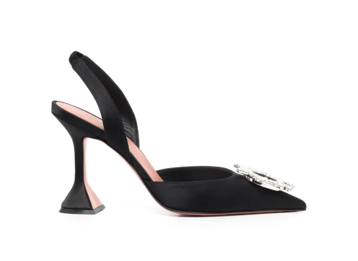 Amina Muaddi menghadirkan desain hak berbentuk segitiga dan hiasan kristal besar di bagian depan membuatnya instantly recognizable. Sepatu ini memberi kesan glamor tanpa harus berusaha keras tentunya pas untuk momen spesial di mana kamu ingin tampil memukau.