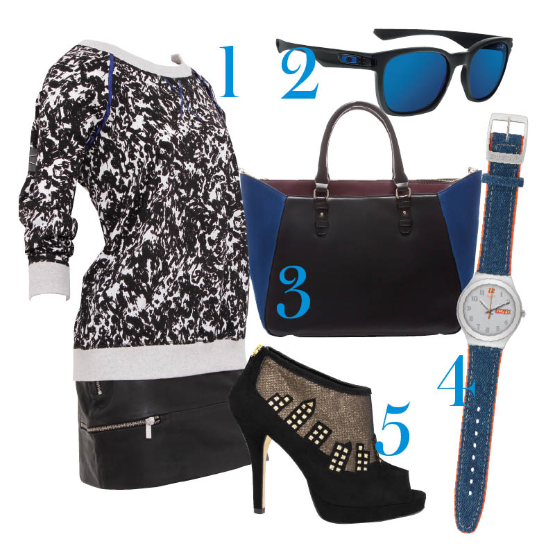 Pilihan gaya sporty untuk aksi Anda di akhir pekan semakin trendy dengan elemen printed sweater dan rok mini kulit berpotongan boxy. Padankan dengan ankle boots bercorak urban untuk membuat Anda outstanding. (Marsya Labde / AS / TA / Image: Dok. Cosmo)