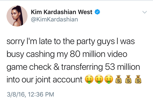 Kim Kardashian memiliki jutaan penggemar, namun sayangnya juga jutaan haters. Ketika Kim dituduh memiliki hutang sebanyak USD53 juta, istri Kanye West ini menulis Tweet yang buat para haters tersebut tak berani berkutik. Berani lawan Kim?