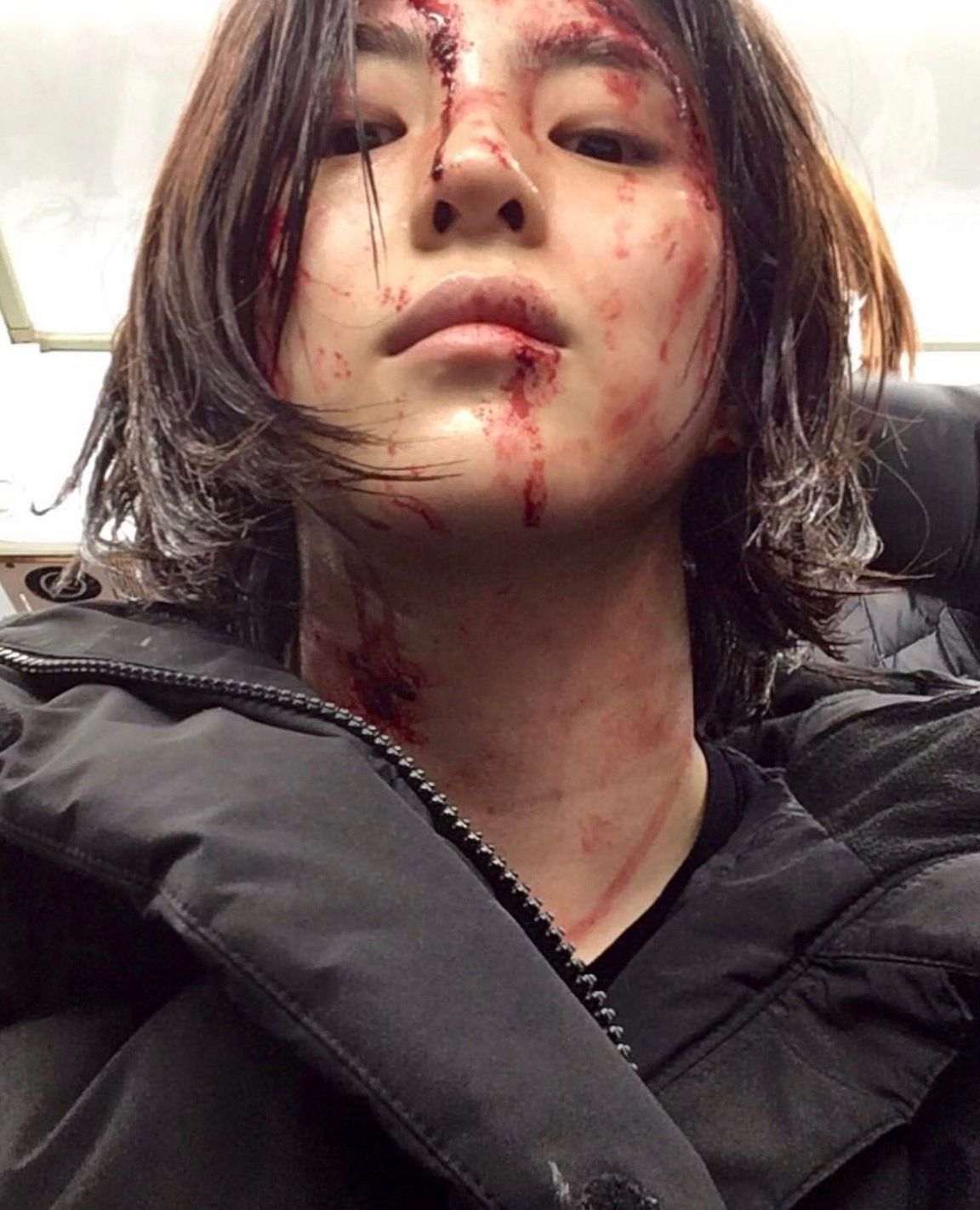 2. Ouch! Sedikit peringatan untuk kamu yang tertarik menonton serial “My Name”, pastikan kalau kamu berani melihat adegan perkelahian dan sedikit tumpahan darah ya! Eits... tapi tenang saja, darah yang ada di seluruh wajah Han So-Hee ini hanyalah darah buatan kok!
