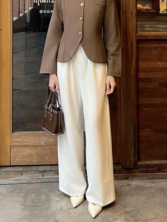 Atasan cokelat dan celana putih bisa membuat penampilan kamu langsung kelihatan lebih cerah dan segar.