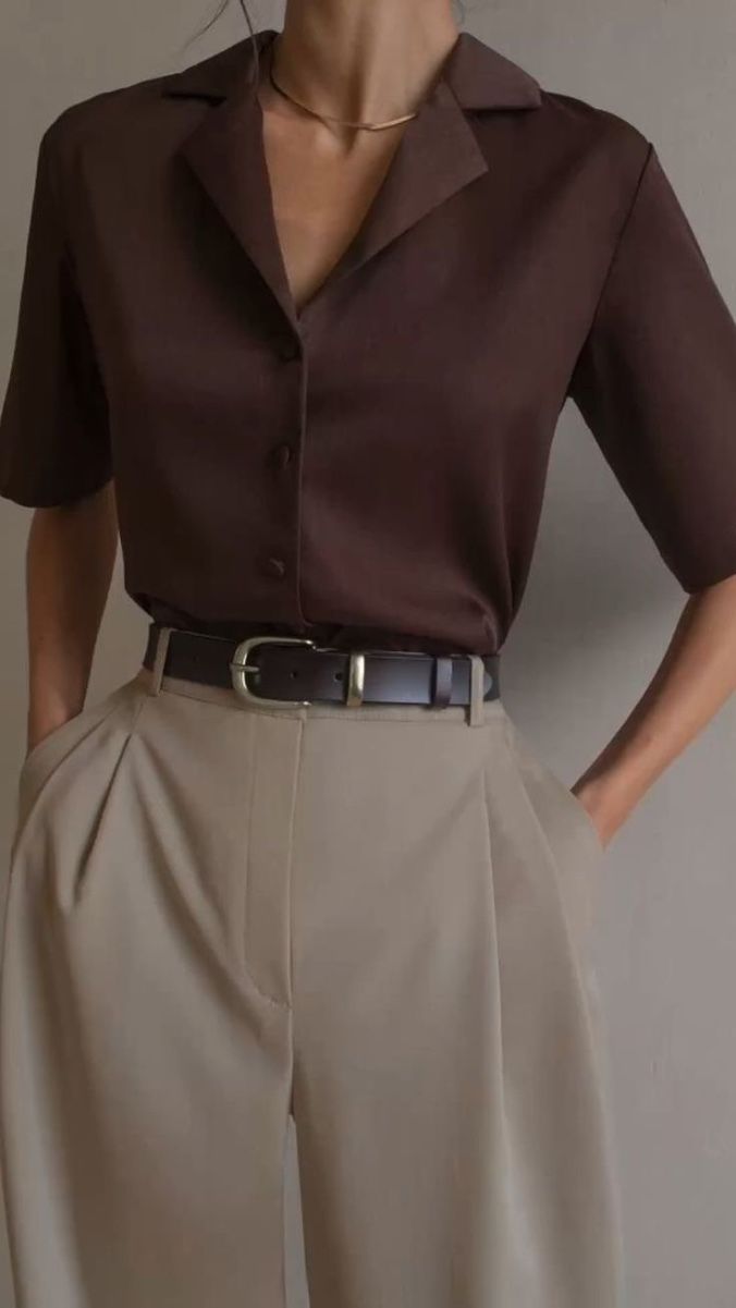 Mulai dari gaya kasual sampai office look, atasan cokelat selalu bisa jadi pilihan andalan.