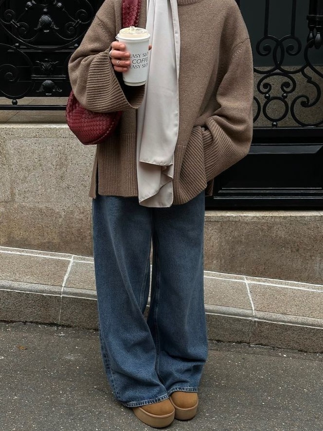 Tidak lengkap rasanya kalau kita tidak memasukkan jeans ke dalam daftar! Atasan cokelat dan celana denim biru adalah kombinasi klasik yang tidak pernah salah.