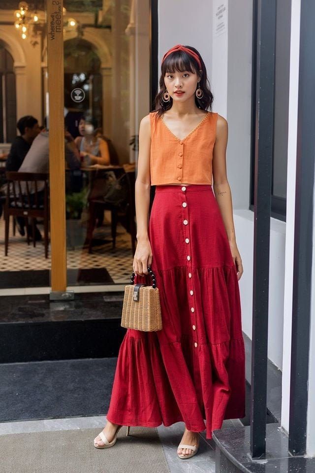 Siapa bilang apricot tidak bisa bold? Padukan dengan merah burgundy untuk look dramatis. Alternatif lainnya adalah pink fusia. Tambah sunglasses oversized dan chunky jewelry.