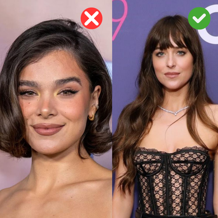 Potongan rambut pendek memperlihatkan seluruh bentuk kepala tanpa “bingkai” visual. Bob pendek atau pixie cut yang terlalu rapi menonjolkan kontur kepala dan membuatnya tampak lebih bulat atau besar. Gaya rambut ini juga kerap memperpendek jarak antara wajah dan bagian atas kepala, sehingga seluruh bagian terlihat lebih dominan.