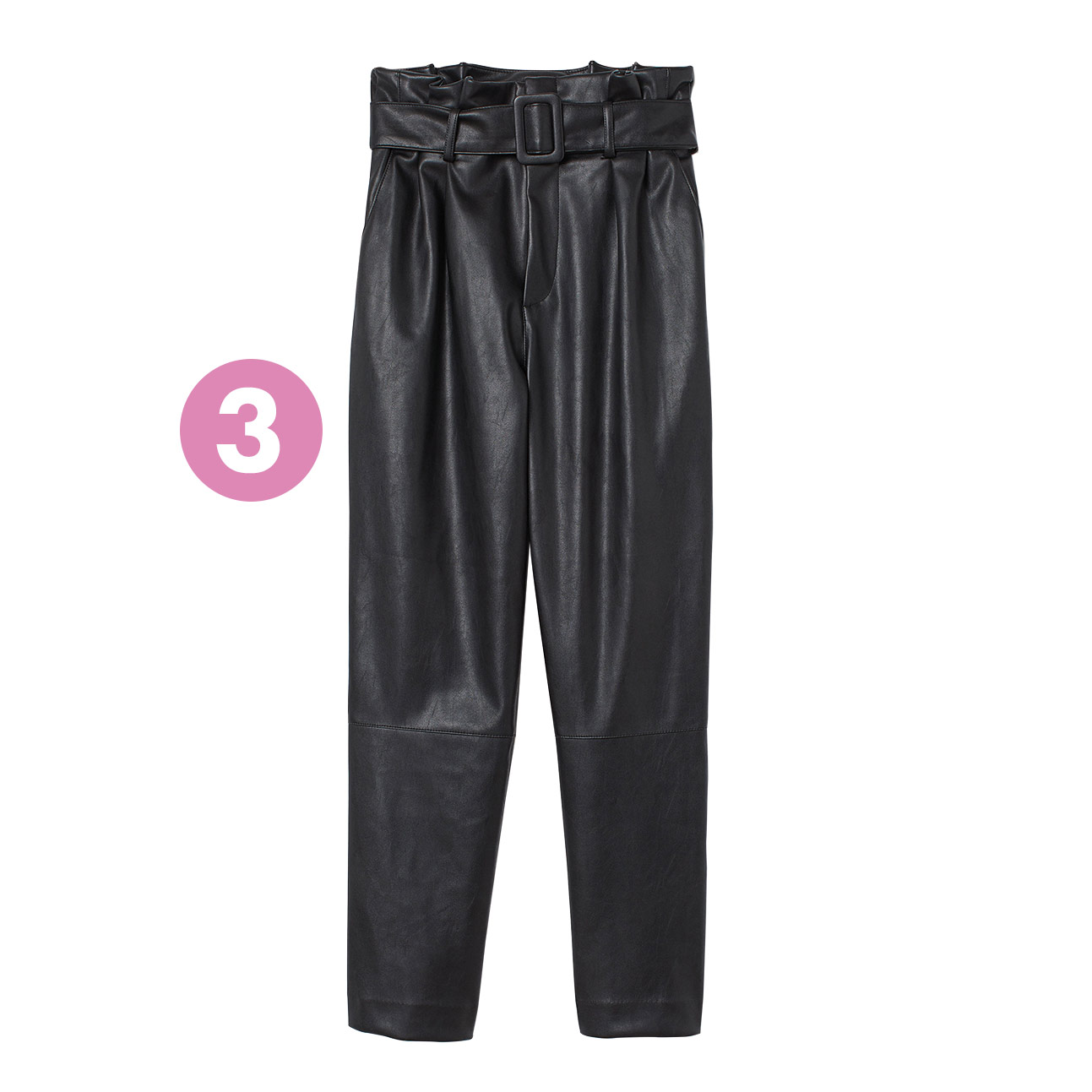 Celana panjang bermaterial kulit bisa mengelevasi gaya kamu jadi tampak lebih terdepan saat pesta akhir tahun. Coba padukan bersama sepatu model pumps dengan garis rancang pointy agar memberikan kesan lebih edgy.