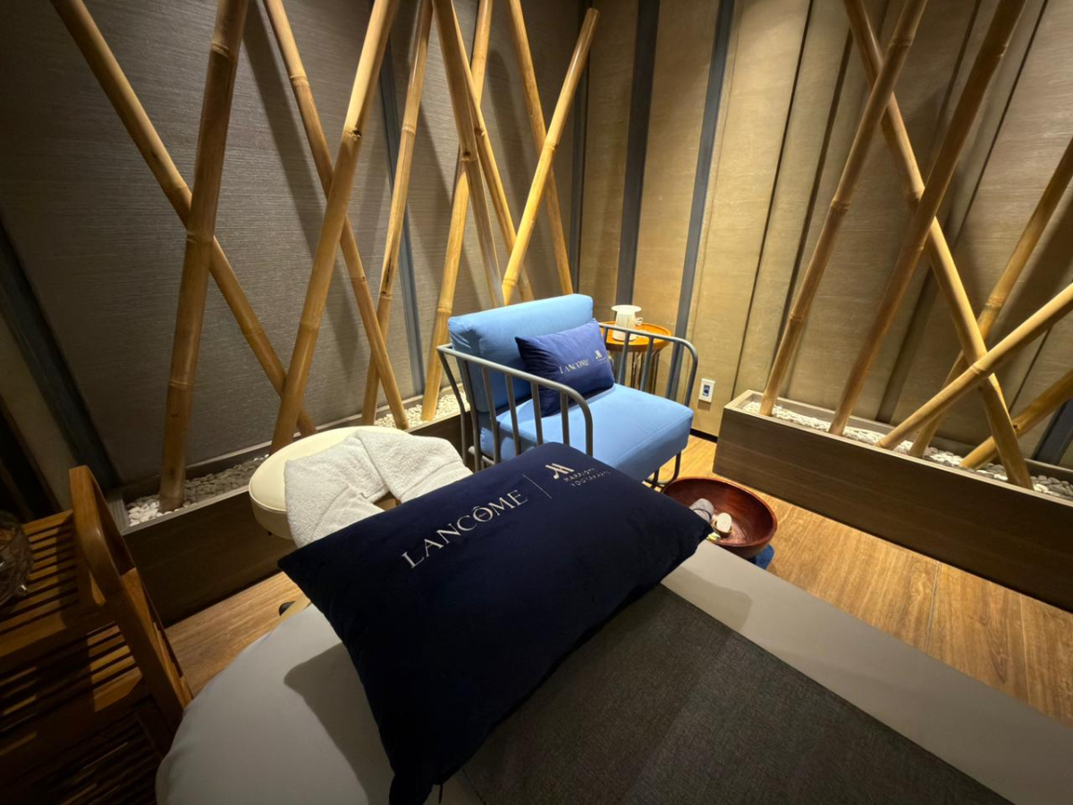 Setiap detailnya dibuat untuk membawa kamu masuk ke atmosfer relaksasi premium: Bathrobe, slippers, dan bed sheet berlogo Lancôme, Cushion khusus, Sudut pasca-perawatan yang menampilkan koleksi riasan dan parfum Lancôme, dan mood lighting lembut yang langsung membuat kamu ingin berbaring dan lupa waktu.