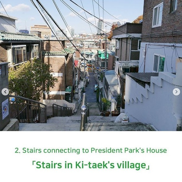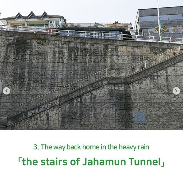 Tangga ini menjadi lokasi adegan Ki-jeong (Park So-dam) membeli buah persik dan membawanya ke rumah keluarga Park untuk menjalankan misi selanjutnya. Berjarak sekitar satu menit dari Woori Supermarket (Doijissal Supermarket), tangga ini mungkin terlihat seperti tangga biasa namun berkat “Parasite” jadi ramai. Karena tangga ini terletak di daerah pemukiman, pengunjung dihimbau untuk tak terlalu berisik, menjaga kebersihan, dan tak menghalangi penduduk setempat yang berlalu-lalang di tangga ini. Kalau ke tempat ini, kamu bisa sekalian mengunjungi Ahyeon-dong Furniture Complex, Taman Seosomun, Taman Olahraga Songijeong, dan beberapa tempat menarik lain yang tak jauh dari situ.
