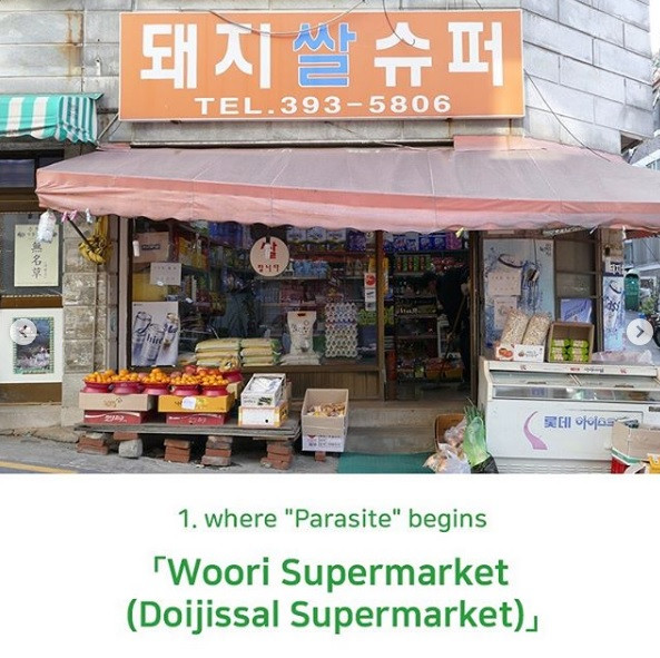 Supermarket ini adalah lokasi di mana Kim Ki-woo (Choi Woo-shik) bertemu dengan temannya Min-hyuk (Park Seo-joon) yang memintanya mengambil alih pekerjaannya sebagai guru privat di keluarga Park yang kaya raya. Di film, nama supermarket ini tertulis Woori Supermarket namun nama sebenarnya adalah Doijissal Supermarket. Tempat di daerah Mapo ini dengan cepat menjadi salah satu tujuan populer bagi pecinta film “Parasite” untuk dikunjungi dan berfoto di depannya. Bila kamu mampir ke sini, kamu bisa sekalian jajan cemilan-cemilan nostalgia khas Korea Selatan yang ada di toko ini.