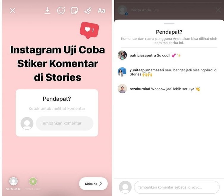 So dengan fitur ini, kamu bisa memulai diskusi mengenai berbagai hal melalui Stories, kemudian kamu dan para followers bisa melihat komentar yang dikirim dan menanggapi komentar tersebut. Dan sama seperti Stories pada umumnya, komentar hanya bisa dilihat dan dikirim secara publik selama 24 jam.