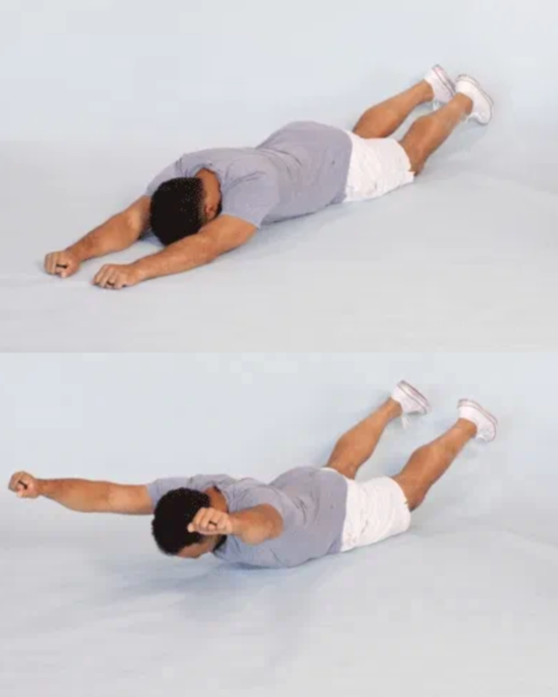 Caranya, berbaring tengkurap dengan tangan dan kaki lurus memanjang. Jaga leher tetap netral, lalu aktifkan otot inti (core) dan otot punggung untuk mengangkat kedua tangan serta kedua kaki secara bersamaan setinggi mungkin dari lantai. Pastikan lutut tetap lurus dan paha ikut terangkat. Tahan selama 1 detik di posisi atas, lalu turunkan kembali secara perlahan ke posisi awal.