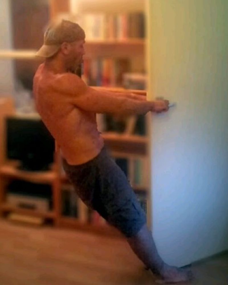 Untuk melakukannya, posisikan tubuh dalam posisi merangkak dengan telapak tangan sejajar tepat di bawah bahu dan lutut berada di bawah pinggul. Jaga punggung tetap lurus, lalu dorong kaki kanan ke arah belakang seolah-olah menendang dinding imajiner, dengan kaki tetap lurus.