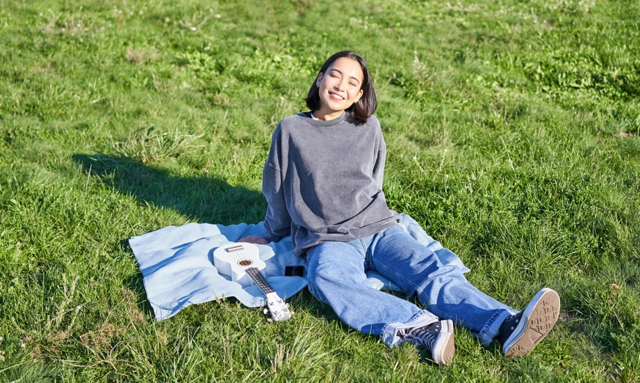 Jika kamu berada di ruangan terbuka, cobalah teknik earthing. Lakukan aktivitas sederhana seperti berjalan tanpa alas kaki,duduk santai, ataupun merebahkan diri diatas hamparan rumput. Selama melakukan aktivitas tersebut, jauhkan diri dari gadget selama kurang lebih 10 menit. Biarkan pikiran dan tubuh terkoneksi dengan lingkungan sekitar dan rasakan fokusmu kembali ke momen saat ini.