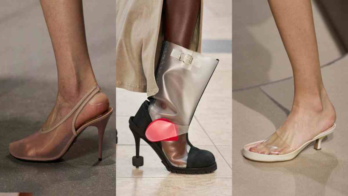 Inovasi material musim ini membawa clear and sheer heels kembali ke jajaran atas tren. Keunikannya adalah efek visual "tanpa alas kaki" yang membuat kaki terlihat lebih panjang dan jenjang tanpa ada gangguan garis warna. Sepatu ini sangat cocok untuk dipadukan dengan busana bermotif ramai atau warna-warna neon yang statement, karena sifat transparannya yang akan menetralisir busana yang sudah ramai.