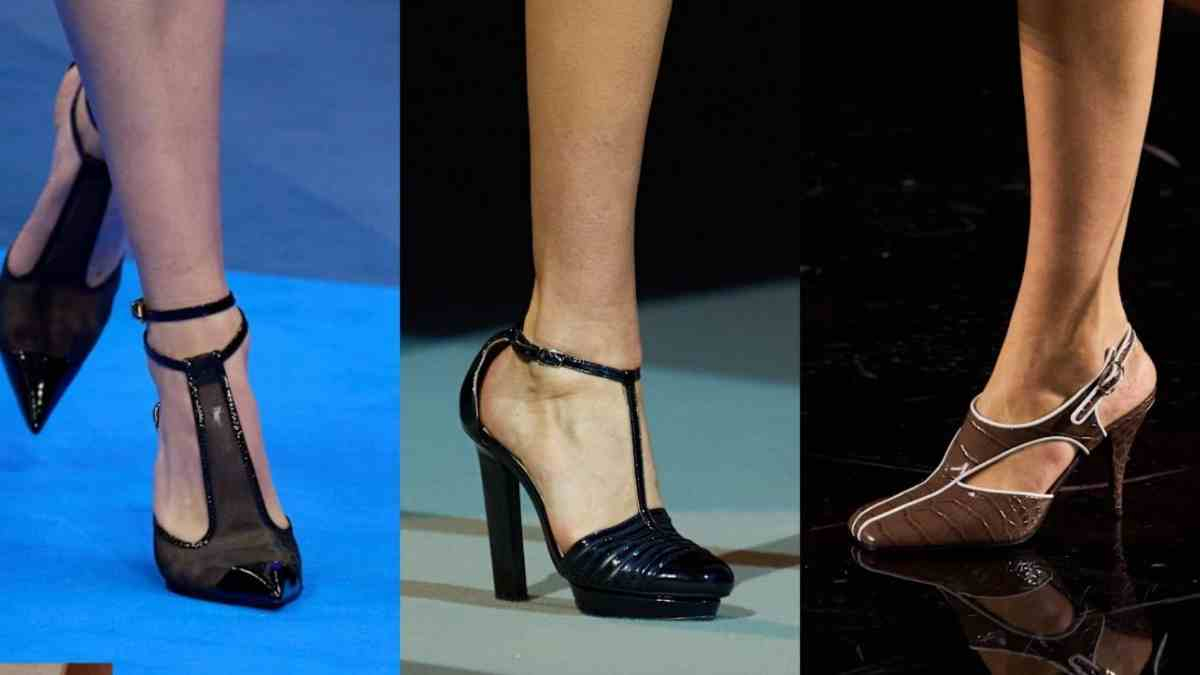 Hadir dengan nuansa retro yang kuat, T-strap heels hadir dengan sentuhan yang lebih modern dan minimalis. Struktur tali yang membentuk huruf "T" dari ujung jari hingga pergelangan kaki memberikan kesan kokoh yang modern. Sepatu ini bantu menopang langkah dengan baik lewat desain strap pada punggung kaki, menjadikannya pilihan praktis untuk aktivitas musim panas yang padat. Kamu dapat memadukan sepatu ini dengan rok mini berpotongan A-line atau setelan blazer pendek untuk menonjolkan kesan vintage yang elegan namun tetap terlihat trendi.