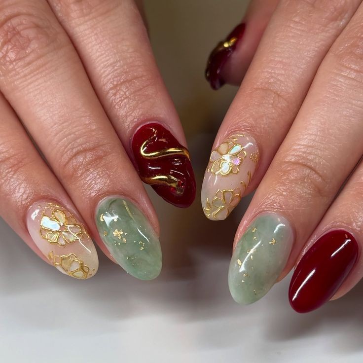 1. Tidak harus selalu merah, karena gold & jade green bikin kuku elegan dan berkelas