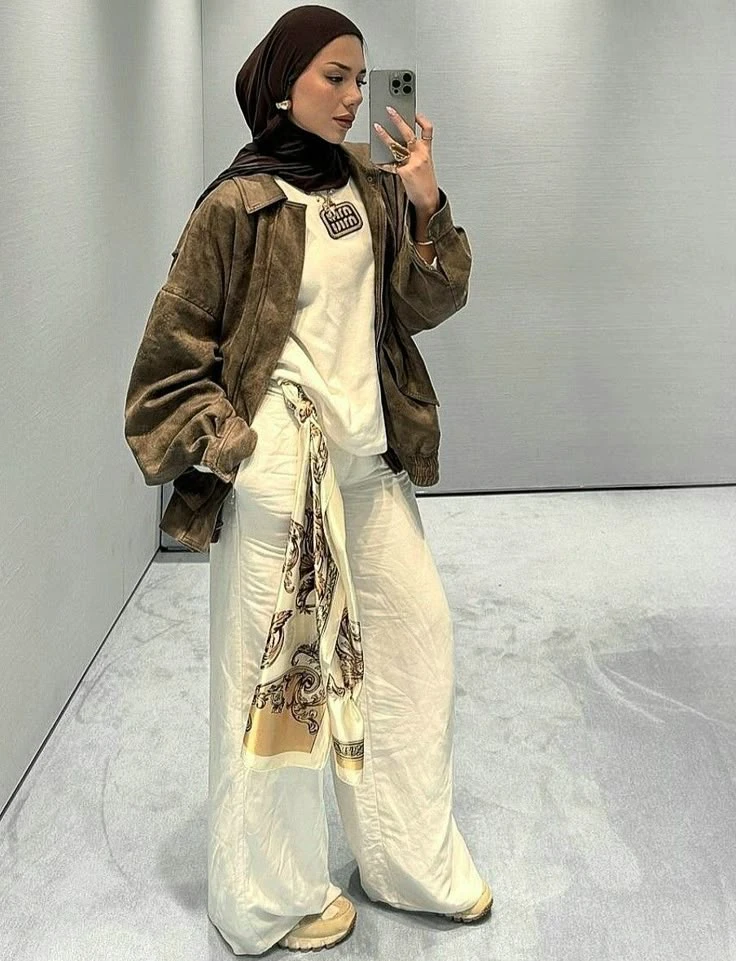 Terakhir, Scarf tambahan yang diliturkan pada tas atau dikalungkan secara asimetris pada leher merupakan cara paling fleksibel untuk menyisipkan motif dan warna. Keunikan scarf sutra atau katun bermotif adalah kemampuannya memberikan koordinasi warna yang harmonis antara hijab dan aksesori pendukung lainnya. Dalam perspektif styling, scarf bermotif floral atau geometris dapat menjadi penawar bagi busana yang serba polos. Untuk tampil sopan, gunakan scarf sebagai penutup dada tambahan dengan cara menyampirkannya secara longgar di bahu. Selain itu, melilitkan scarf pada pegangan tas tangan juga menjadi teknik styling cerdas untuk memberikan sentuhan warna yang senada dengan hijab Anda, menciptakan tampilan yang terkurasi dengan baik dari kepala hingga ujung kaki.