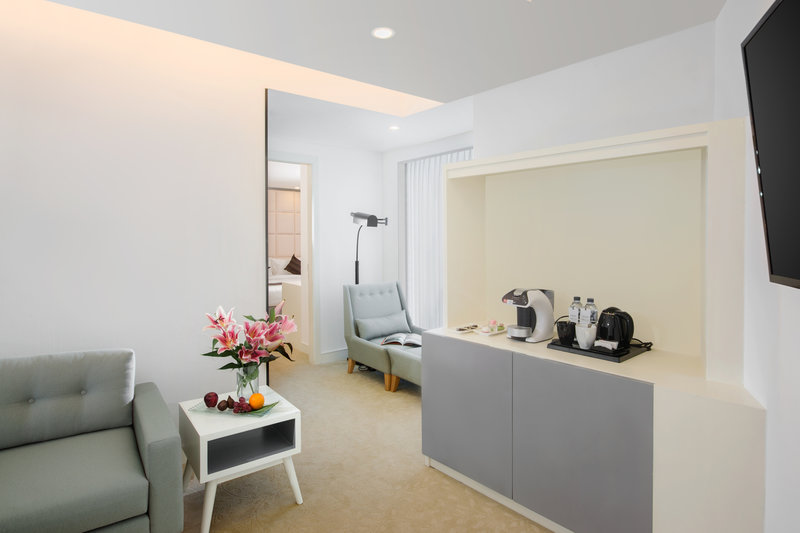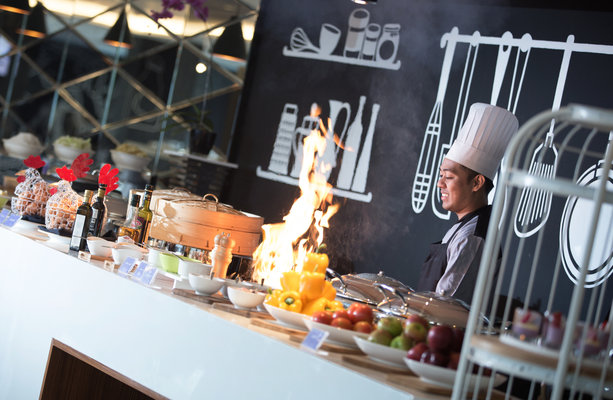 Looking for a place to eat? Anda dapat berkunjung ke Syndeo Cafe yang terletak di ground floor untuk menikmati cocktail dan berbagai santapan lezat yang dimasak oleh para chef ahli. Ditambah lagi, Syndeo dibuka selama 24 jam, lho!