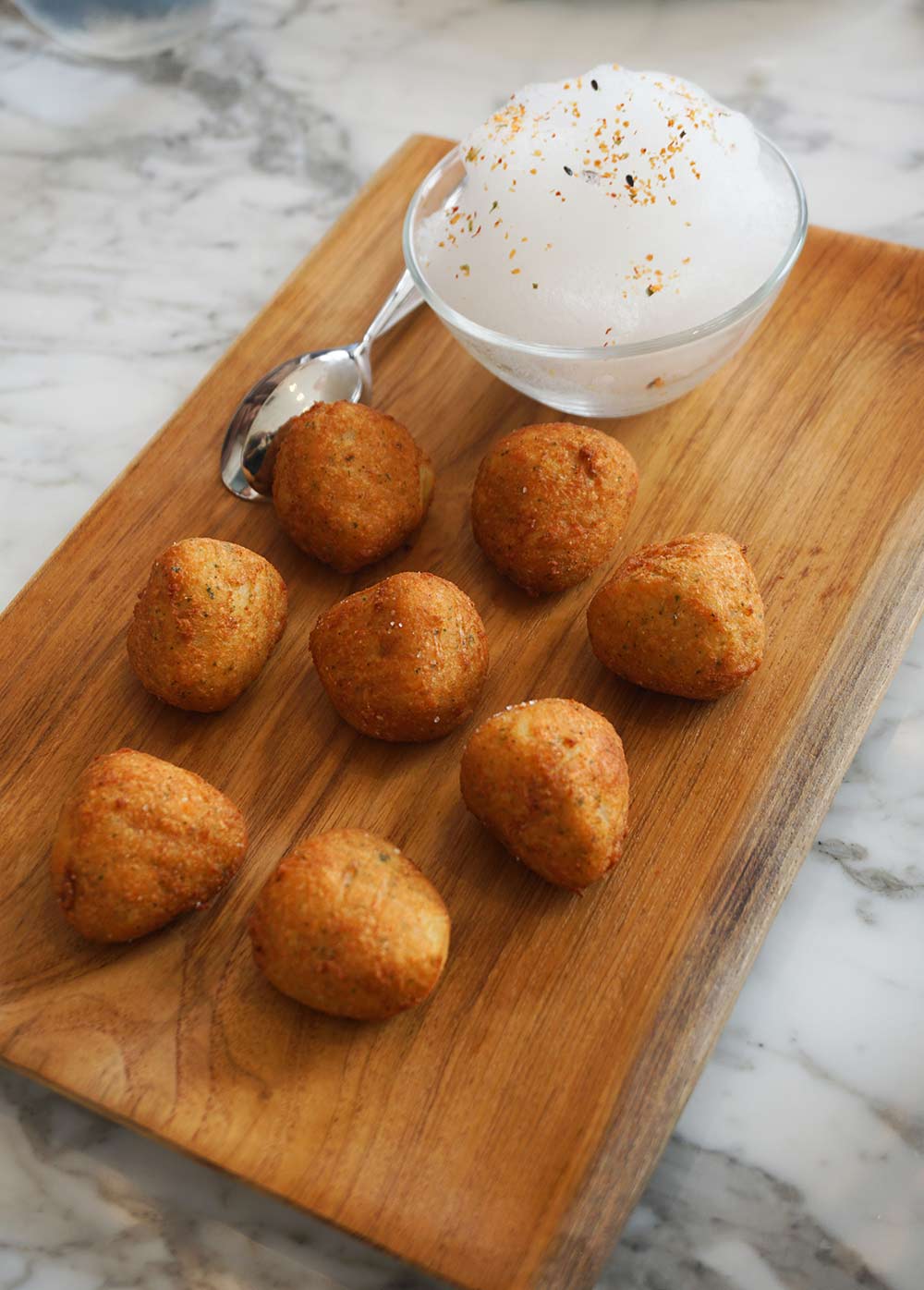 Pilihan menu dengan sensasi seafood khas Mediterania juga menjadi menu yang menyapa Cosmo selanjutnya yaitu Salmon Fritter. Digoreng hingga berwarna golden brown, menu ini tak hanya cantik tetapi juga memanjakan lidah dengan komposisi daging salmonnya yang melimpah. Tekstur salmonnya yang lembut seketika langsung meleleh di mulut saat mencicipinya. Belum lagi menu ini juga disajikan dengan lemon foam yang memberi cita rasa refreshing.