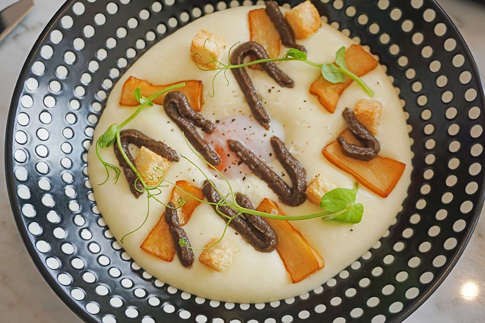 Ada juga menu Slow Cooked Egg with Potato Foam, Mushroom, and Truffle. Kombinasi dari kentang, jamur, truffle dan telur yang dimasak dengan teknik spesial ini juga identik dengan rasa yang gurih dan legit! Aroma truffle pun semakin meningkatkan selera makan.