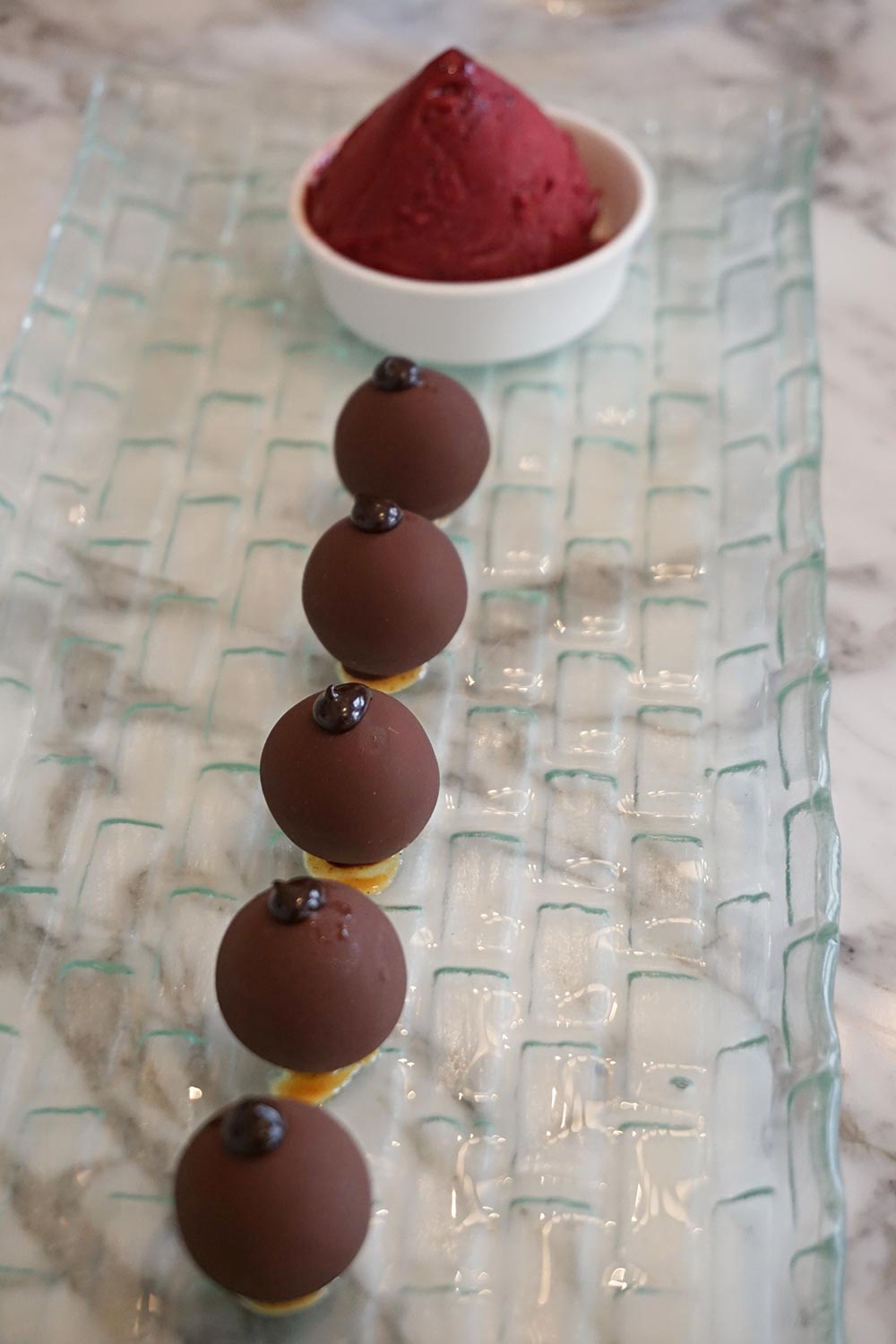 Beralih ke dessert, Cosmo mencoba 2 varian dessert yang berbeda dari Mare Nostrum yaitu Creme Catalana with Strawberry and Mango Sorbet. Sesuai namanya, dessert ini didominasi sensasi rasa asam-segar khas buah stroberi dan mangga. Untuk menyeimbangkannya di atasnya disajikan pula krim dengan rasa vanila yang manis. Terakhir ada Liquid Chocolate Bonbons with Blackcurrent Sorbet. Menu tersebut tak kalah exceptional sebab ketika kamu mengigitnya, dark cokelat cair didalamnya akan langsung menyebar ke dalam mulut. Mare Nostrum juga menyajikan menu ini bersama blackcurrent Sorbet sebagai penutup yang manis.