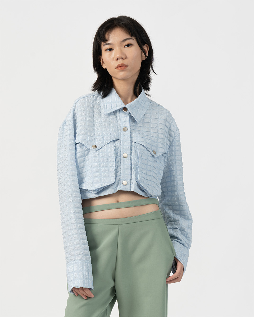 Selain seksi, kamu juga bisa menampilkan gaya sporty. 3Mongkis mengemas crop jacket lansirannya dengan potongan drop shoulder yang kasual serta permainan tekstur. Selain itu aspek fungsional tampak turut diperhatikan dengan kehadiran saku yang juga turut jadi statement.