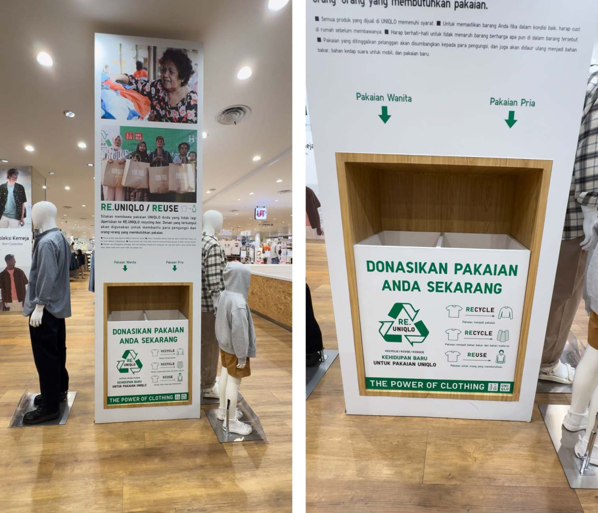 Berdonasi dengan menyalurkan pakaian Uniqlo ke dalam recycle box