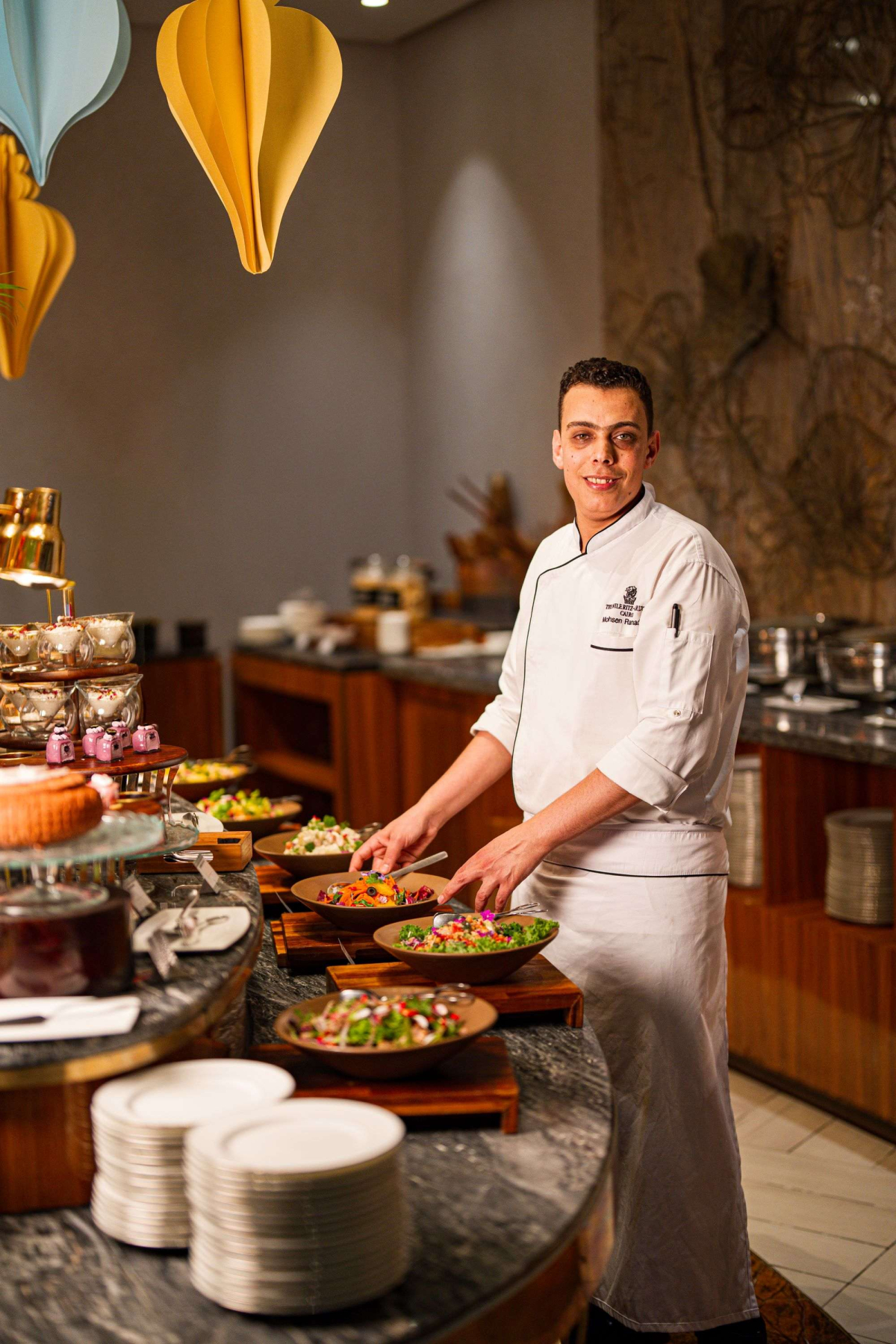 Kolaborasi tersebut ikut dipimpin Chef Walid Anwar Diab, Senior Chef de Cuisine The Nile Ritz-Carlton, Cairo, yang lebih dari tiga dekade mendedikasikan diri pada seni kuliner dan memperkenalkan gastronomi Mesir ke panggung internasional. Di sampingnya ada juga Chef Mohsen Mohamed Ramadan Ahmed Hassan, yang berpengalaman lebih dari 18 tahun dalam jaringan Marriott dan dikenal karena kemahirannya meracik tradisi Mesir, Lebanon, dan Suriah dalam presentasi elegan dan kontemporer.