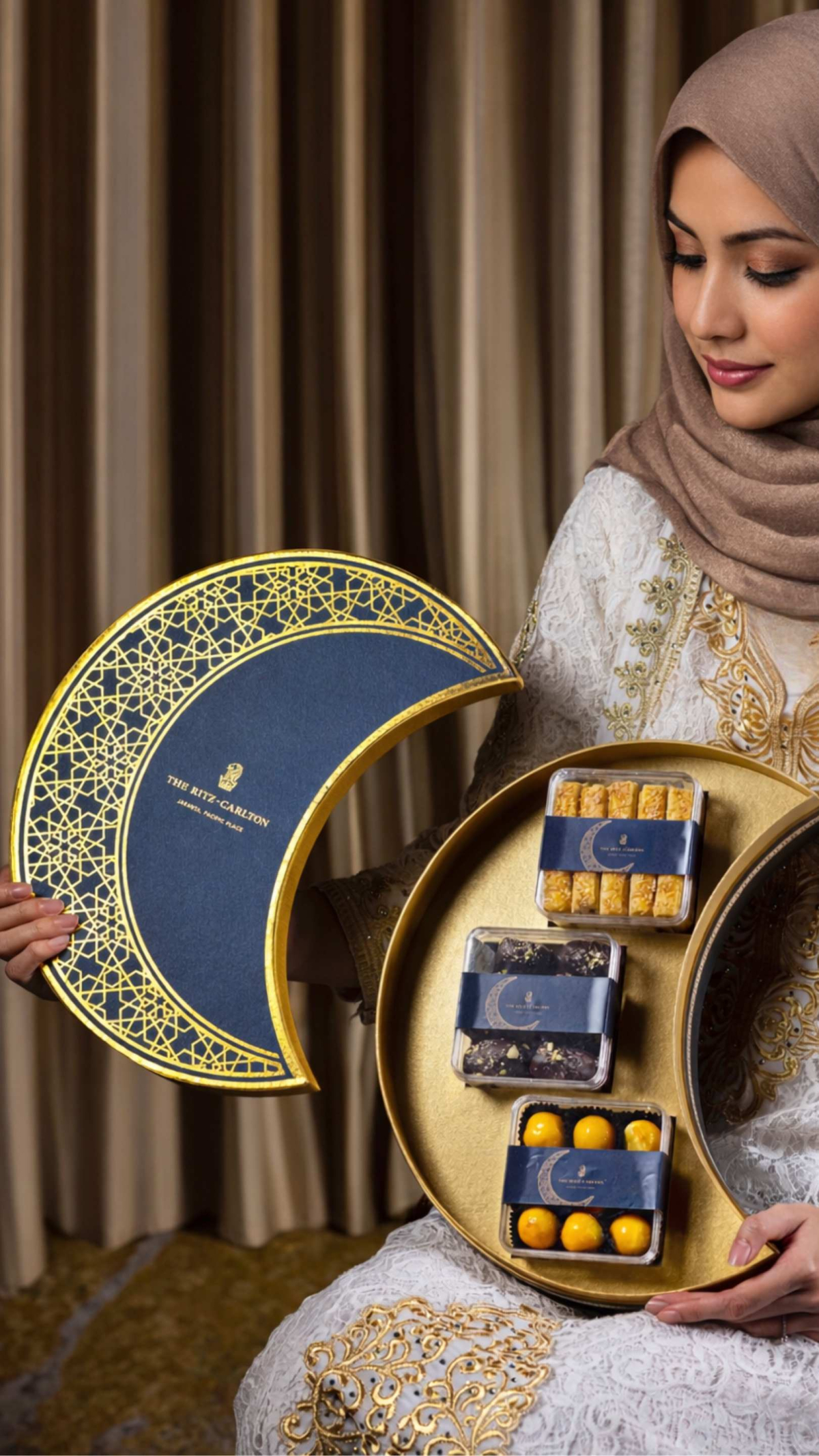 Setiap tahunnya juga The Ritz-Carlton Jakarta, Pacific Place pun menghadirkan ragam hampers dengan desain yang mesmerizing untuk diberikan kepada orang terdekat. Ada lima pilihan hampers eksklusif dengan tema “Tales of Celestial Nights” yang cantik dan cocok dijadikan sebagai kenang-kenangan. Hampers ini juga memiliki warna keemasan dan motif Timur Tengah yang menawan.