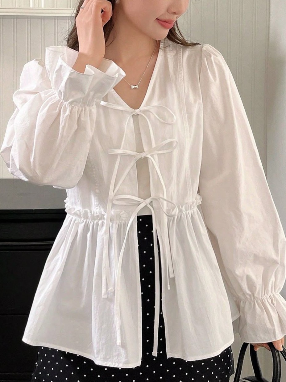 Bell sleeve sering digunakan pada blouse feminin atau outfit semiformal. Dipadukan dengan rok pleated, model ini memberikan sentuhan yang sophisticated tanpa terlihat berlebihan.
