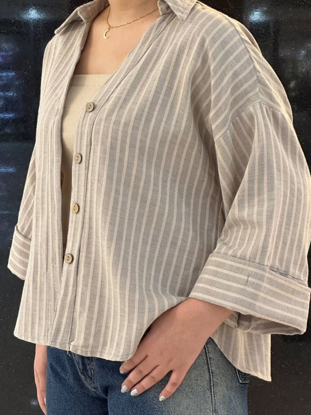 Kalau kamu padukan dengan celana high-waist atau rok A-line, model ini bisa menciptakan tampilan yang chic dan effortless~