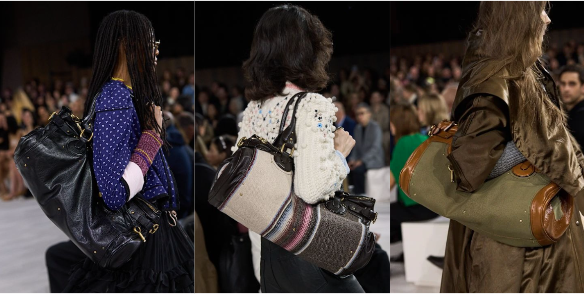 Chemena Kamali menghidupkan kembali tahun 2000-an Chloe dengan menghadirkan tas Paddington dalam versi Maxi yang jauh lebih besar dan slouchy. Terinspirasi dari busana tradisional rakyat Belanda—seperti detail renda dan motif bunga yang diwariskan dari ibu ke anak—Kamali memaknai "folk" sebagai sesuatu yang dibagikan dalam komunitas. Musim ini, siluet ikonik tersebut hadir dalam versi full leather yang klasik serta woven multicolor stripes yang tekstural. Dengan gembok raksasa yang tetap menjadi ciri khasnya, tas ini adalah definisi dari gaya effortless French-girl yang menggemari sentuhan nostalgia namun tetap membutuhkan tas berukuran besar.