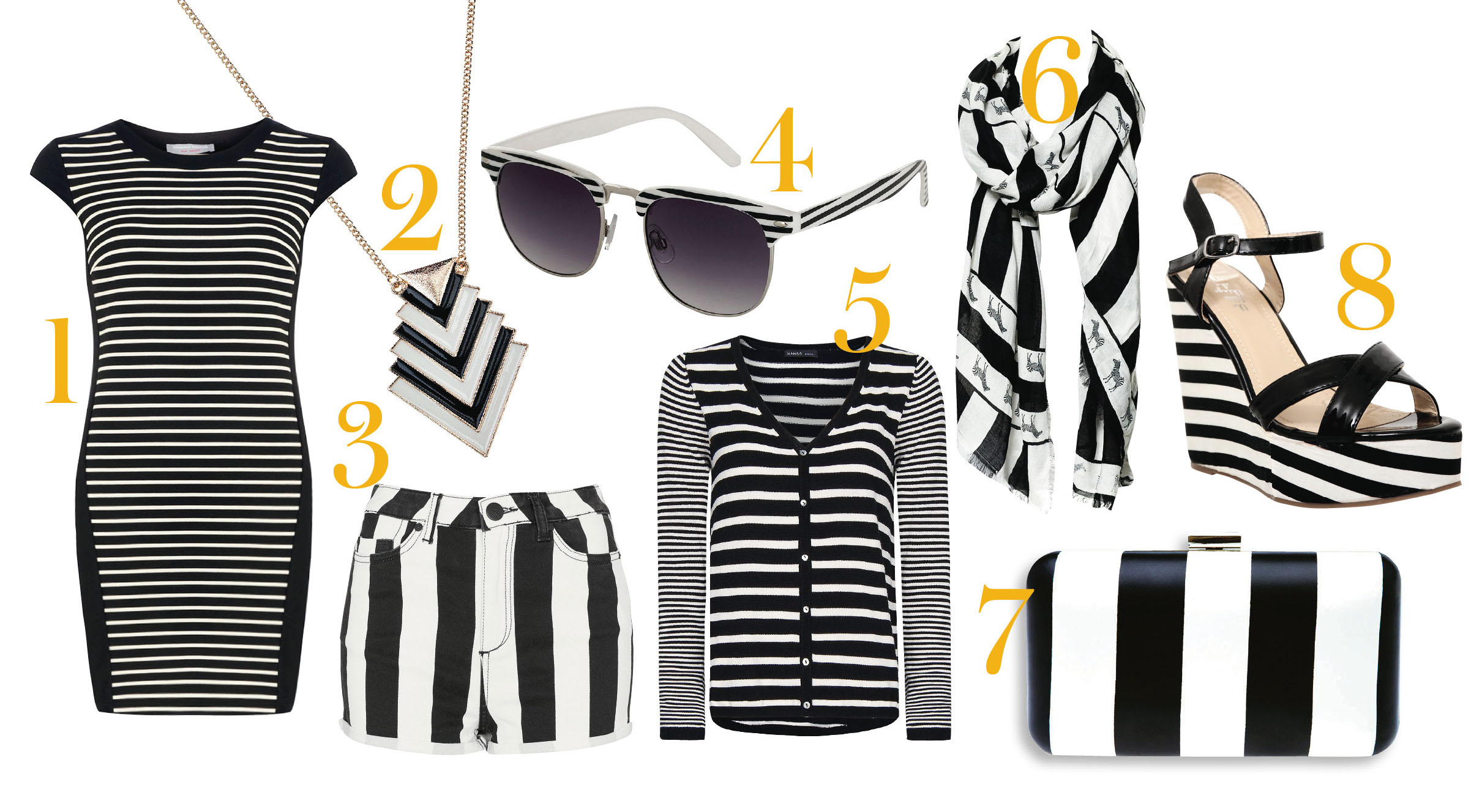 Bertambah lagi item gaya untuk Anda miliki bulan ini. Yup! Nuansa stripes berpalet hitam-putih kini hadir untuk membuat penampila kasual menjadi lebih playful. Dan semuanya ini di bawah Rp500.000,-. (Marsya Labde / TA / Image: Dok. Cosmopolitan)