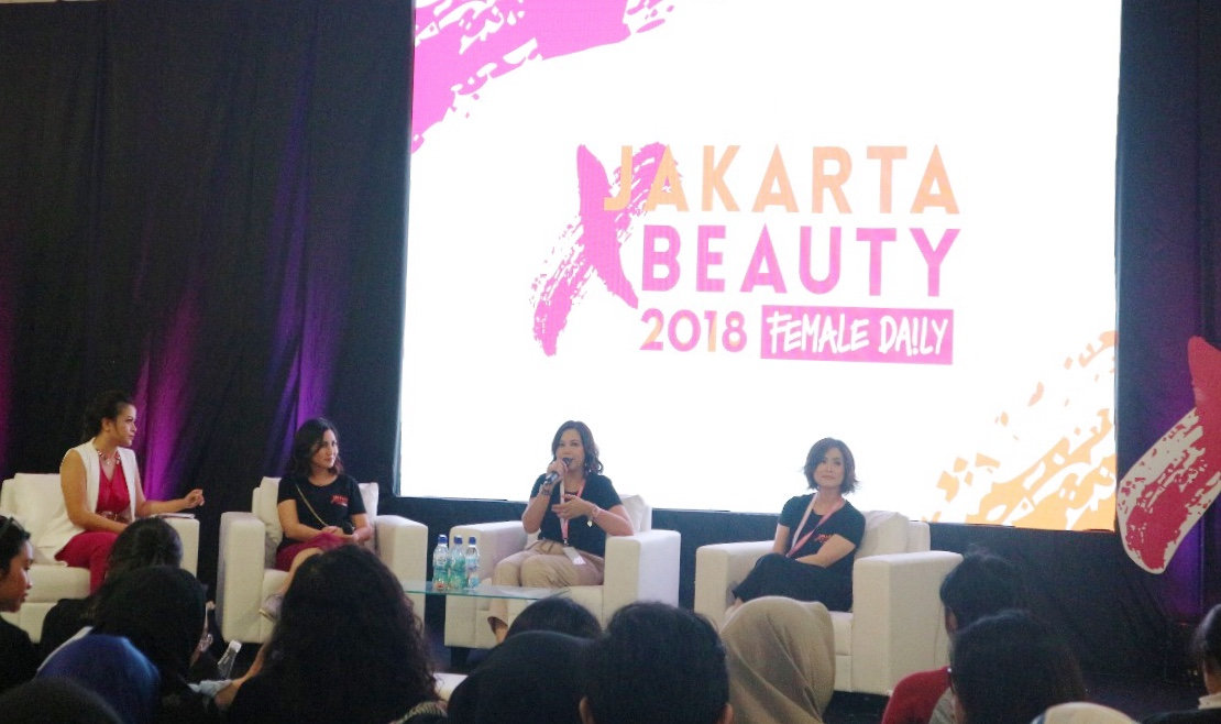 Press conference hari pertama Jakarta X Beauty 2018 yang di hadiri oleh Hanifa Ambadar, CEO Female Daily Network, Ina Balasong, Managing Director PT Kreasi Meluas, dan Liah Yoo, International Skincare Guru, founder of Krave Beauty.