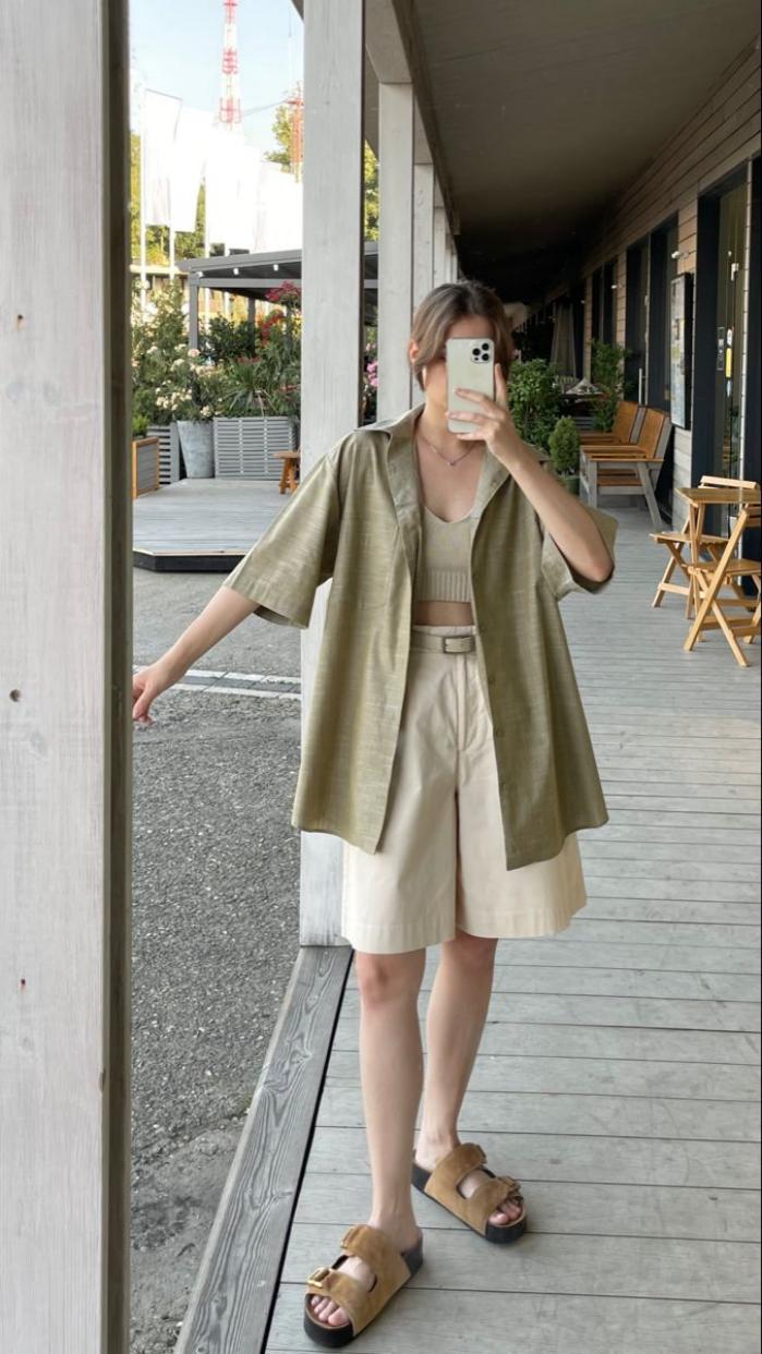 Untuk tampilan santai di akhir pekan, kamu bisa memilih celana pendek atau chino warna pasir. Padukan dengan kemeja kerah tegak warna olive. Gulung lengan kemejamu sedikit, pakai kacamata hitam, dan voila! Kamu siap difoto untuk konten Instagram.