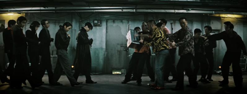 Ingat adegan long-take legendaris di lorong saat Oh Dae-su bertarung melawan puluhan orang hanya dengan palu? BTS mengemas ulang adegan tersebut dengan gaya mereka sendiri.