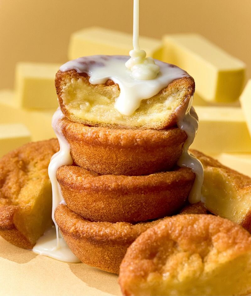 Butter Tteok memiliki tampilan luar secantik madeleine khas Prancis, namun saat digigit, kamu tidak menemukan remah roti yang lembut, melainkan lebih oily dan sensasi kenyal yang elastis.